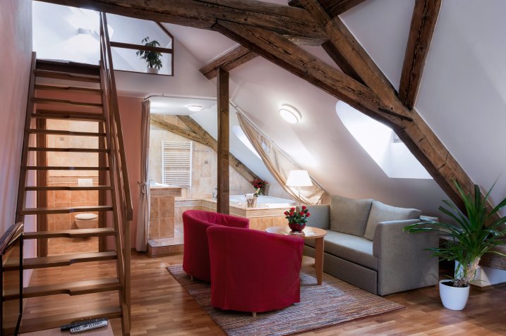 Umístění a výhled2. patro s výhledem na Dietrichsteinský zámek, Svatý kopeček a malebnou ulici HusovaPočet lůžek4 + 1 možná přistýlkaVybaveníkrb, vana, klimatizace, wi-fi, LCD TV, satelit, minibar, varný set (rychlovarná konvice, káva, čaj, cukr, smetana), trezor, WC, fén, deštník, 2 křesla, rozkládací sedačka, lampa + lampičky